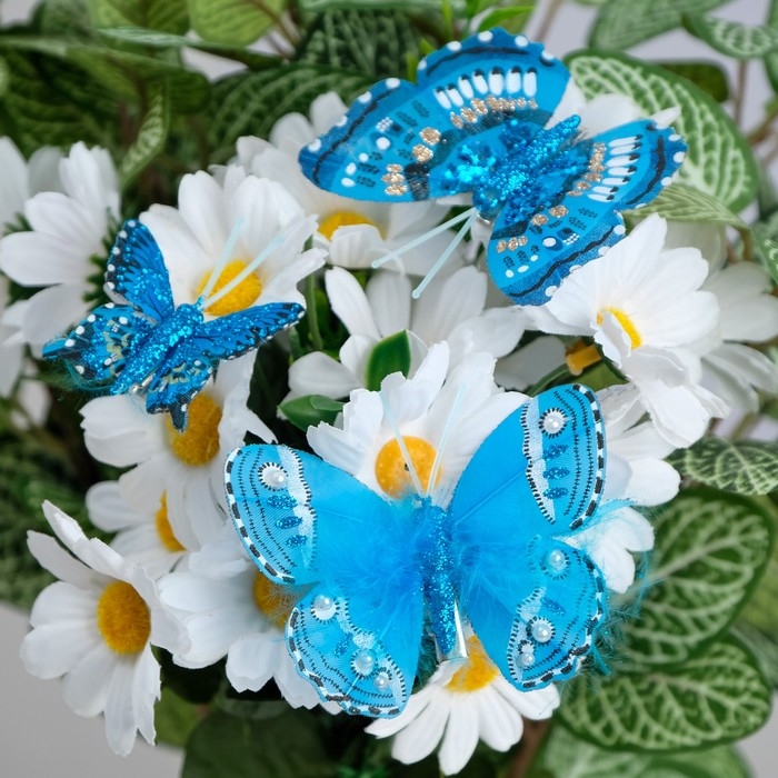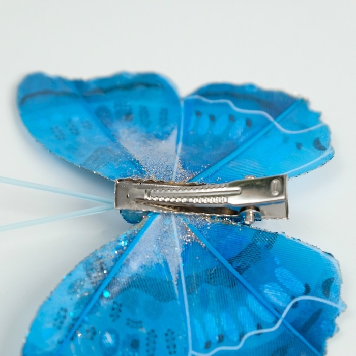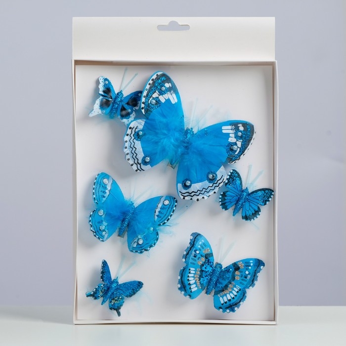 Набор бабочек для декора и флористики, на прищепке, пластиковый, синий, 6шт.,5 см, 8 см и 12 см