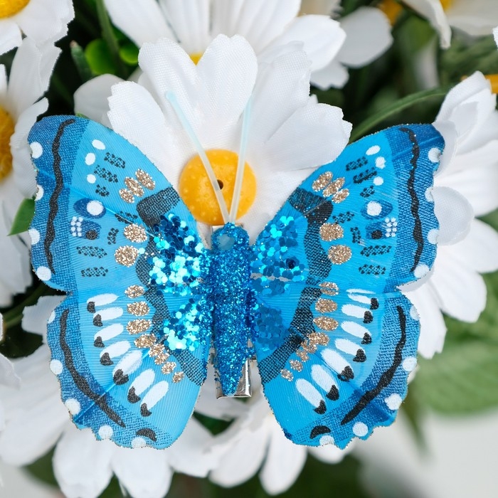 Бабочка для декора и флористики, на прищепке, пластиковая, микс, 1 шт., 7,5 х 7 х 1 см