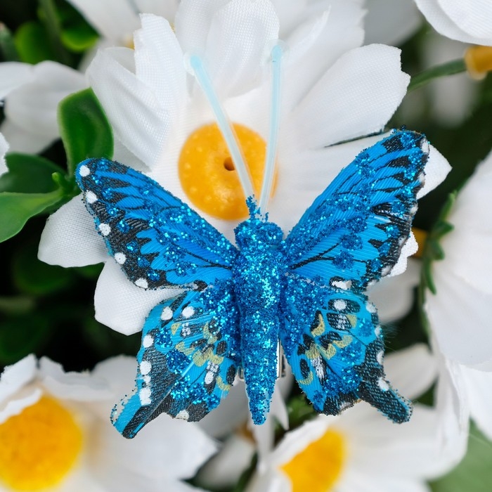 Бабочка для декора и флористики, на прищепке, пластиковая, микс, 1 шт., 7,5 х 5 х 1 см