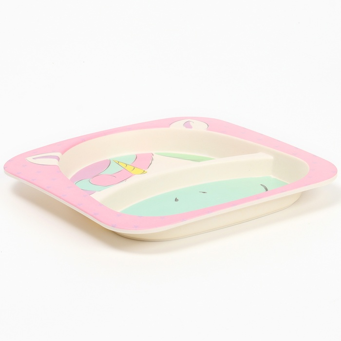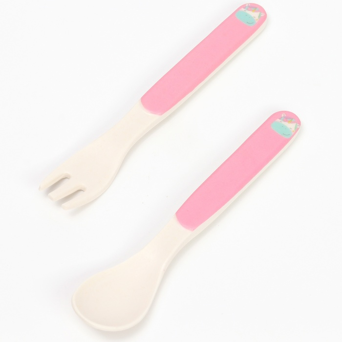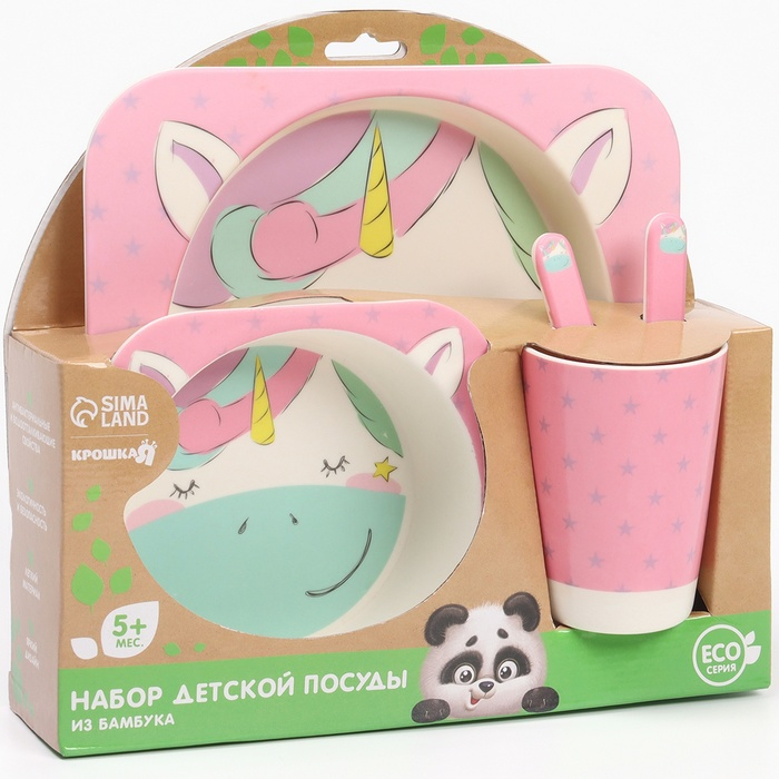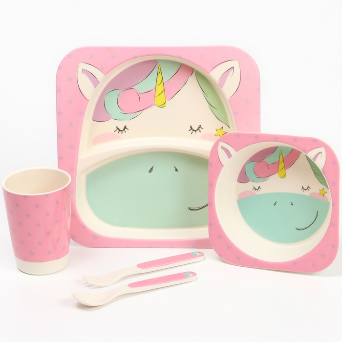 Набор бамбуковой посуды «Единорожка», тарелка, миска, стакан, приборы, 5 предметов