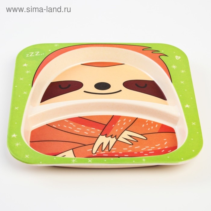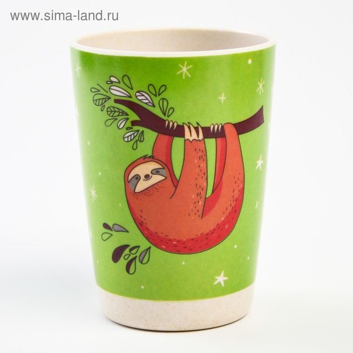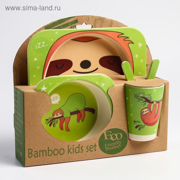 Набор бамбуковой посуды «Ленивец», 5 предметов: тарелка, миска, стакан, вилка, ложка