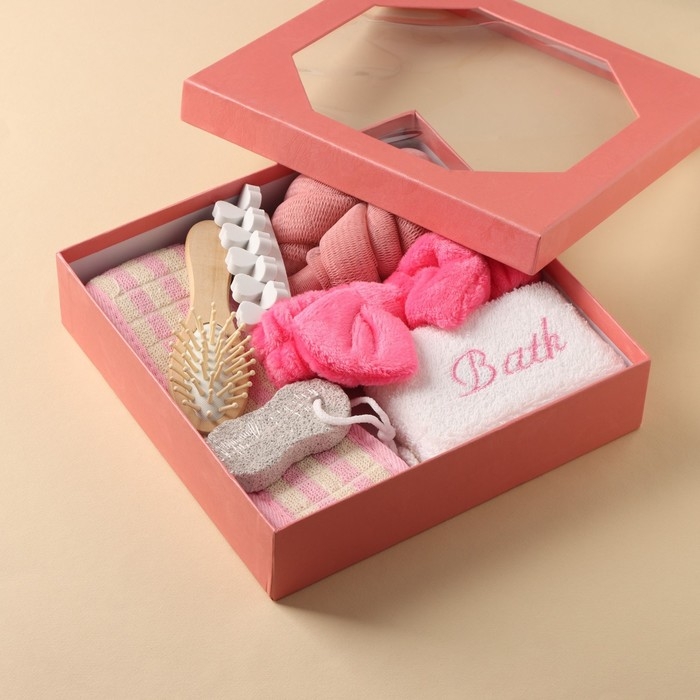Набор банный, 7 предметов (3 мочалки, повязка на голову, расчёска, разделитель для пальцев, пемза), цвет МИКС