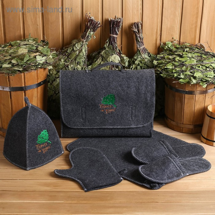 В портфеле можно хранить банные принадлежности и средства личной гигиены. Банная шапка защитит голову от перегрева, волосы от ломкости, а рукавица — от случайных ожогов.
