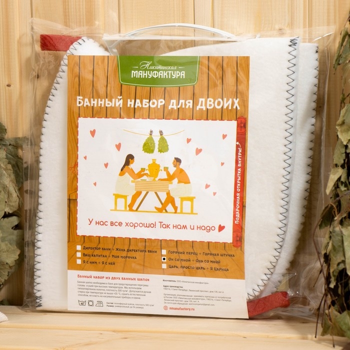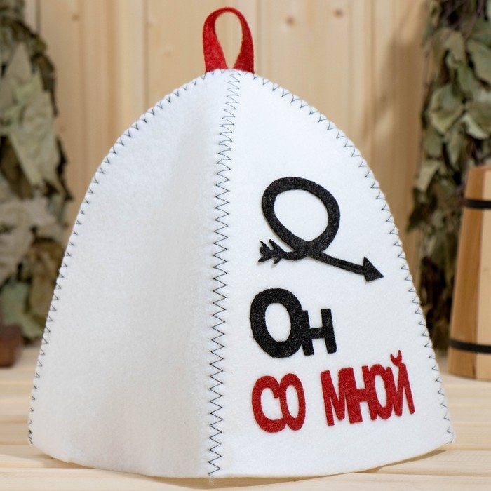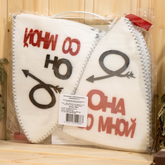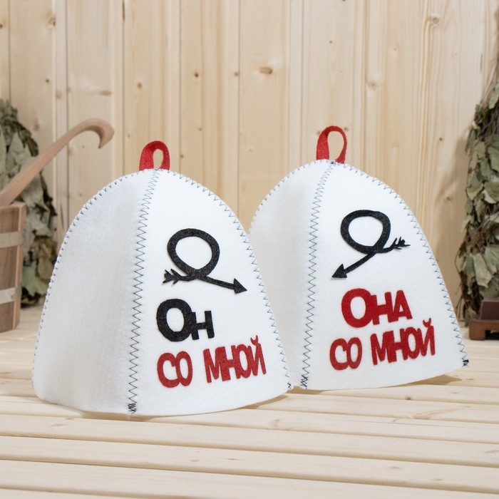 Набор банный с аппликацией "Он со мной+Она со мной" (шапка+шапка)