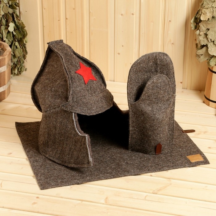 Набор банный "Старший по бане" шапка, коврик, рукавица