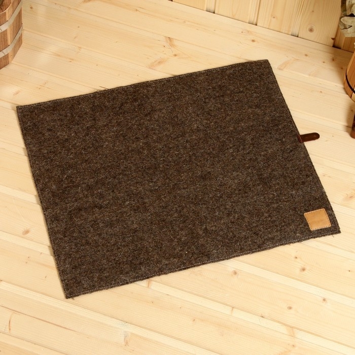 Коврик-сидушка для бани из войлока (содержание 90% шерсть) размером 40*50 см с петлей для сушки изделия.