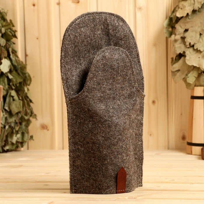 Рукавица для бани войлочная (содержание 90% шерсть), универсальный крой позволяет надевать ее как на правую так и на левую руки.