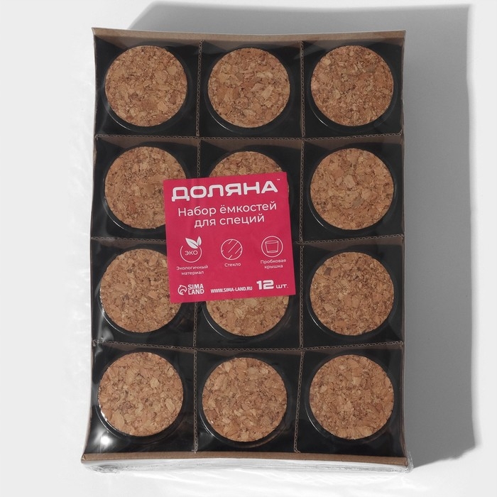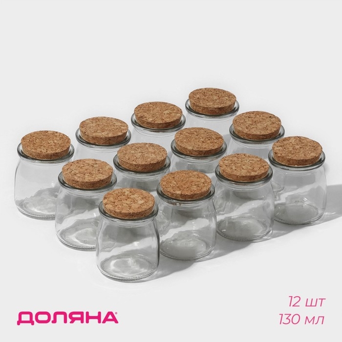 Набор баночек стеклянных для специй с пробковой крышкой Доляна «Парфе», 130 мл, 7×6,5 см, 12 шт
