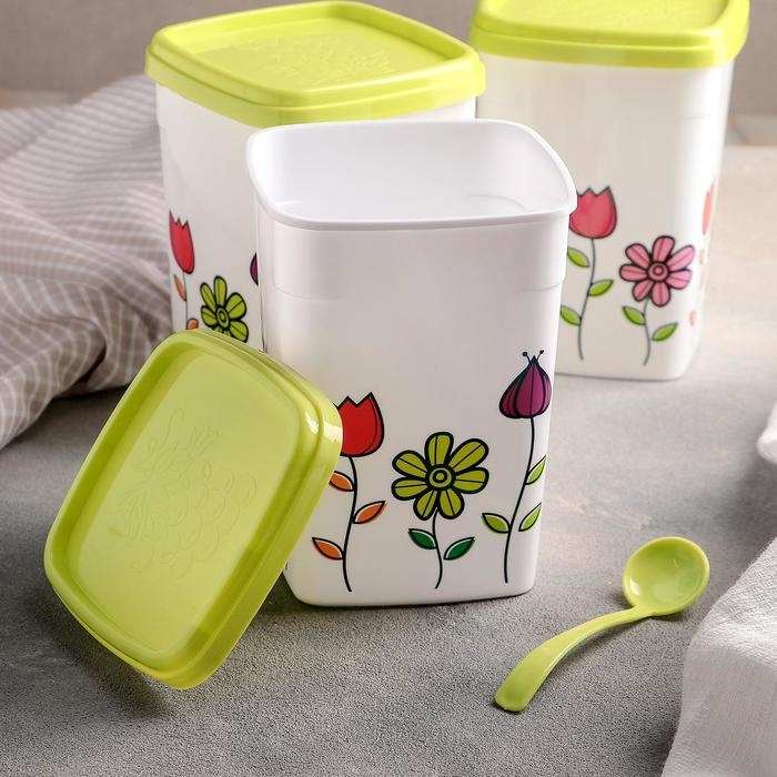 Набор банок для сыпучих «Клумба», 500 мл, 3 шт, цвет МИКС