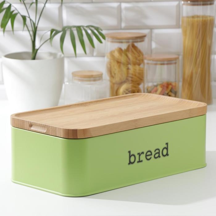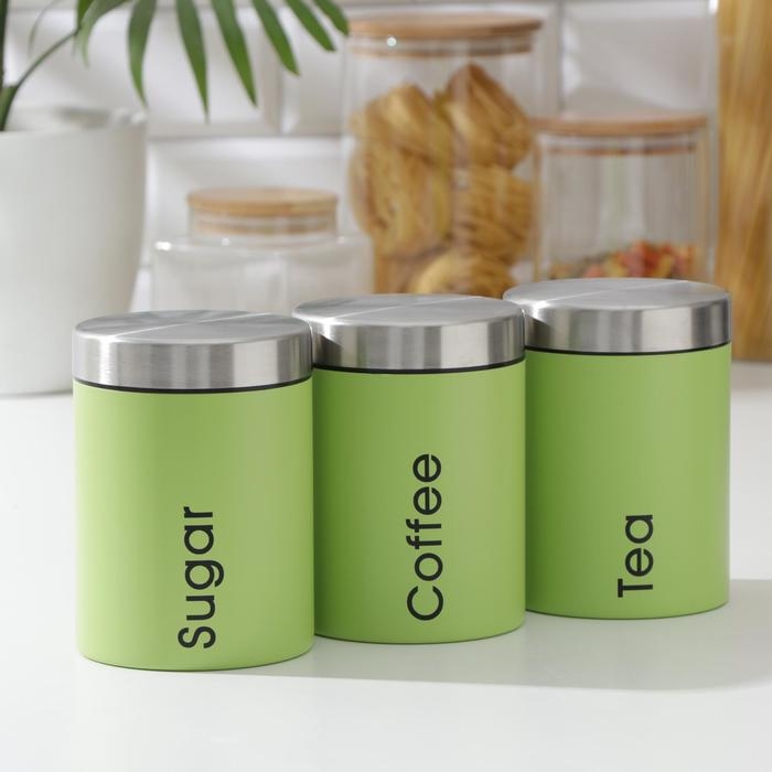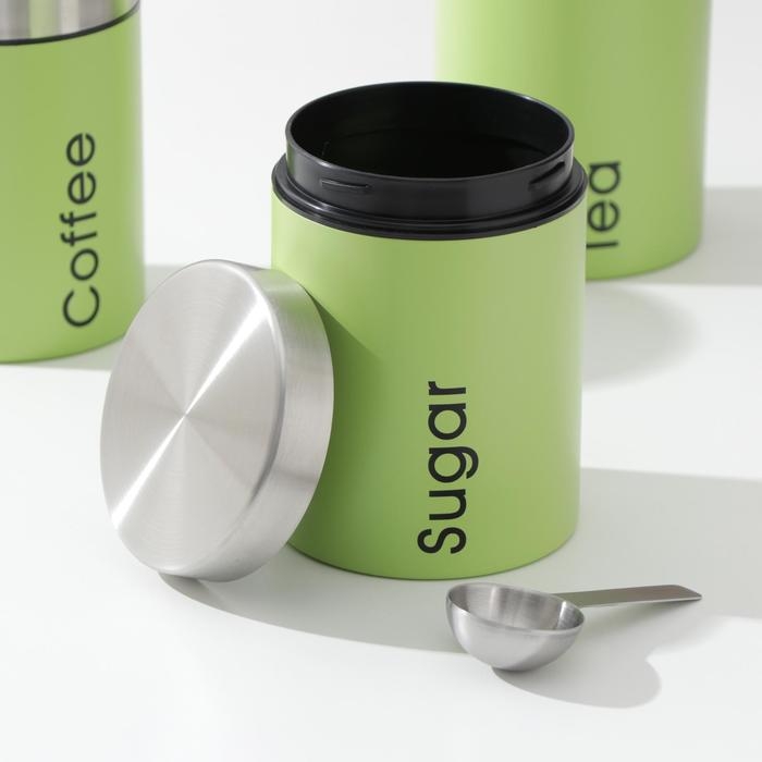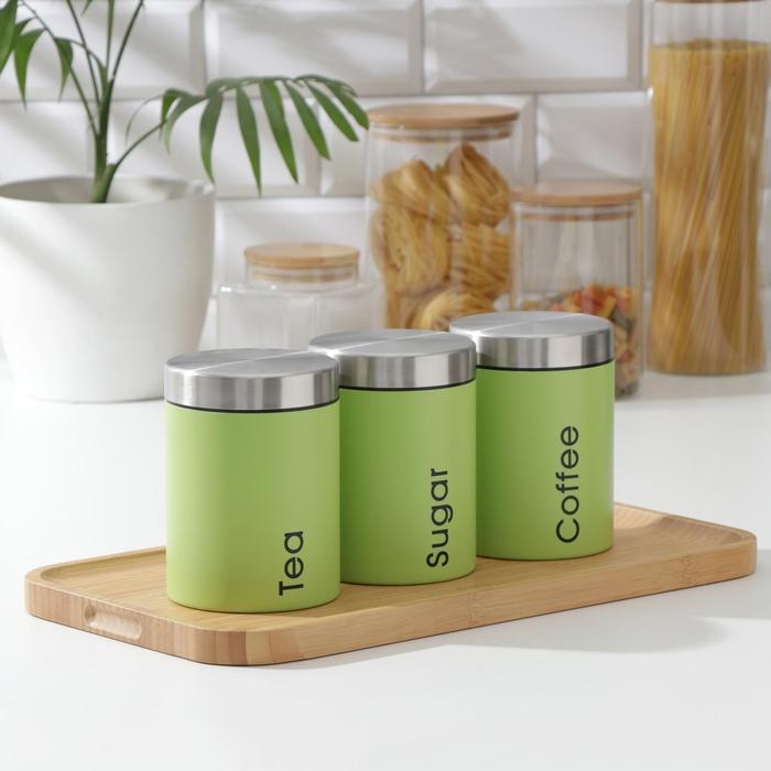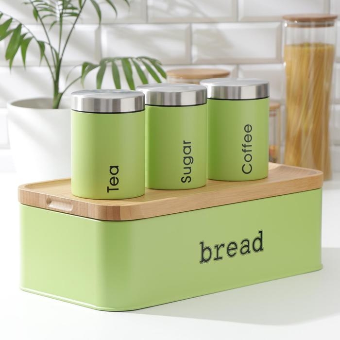 Набор банок для сыпучих продуктов Prime, 3 шт, с ложками, с хлебницей, цвет салатовый