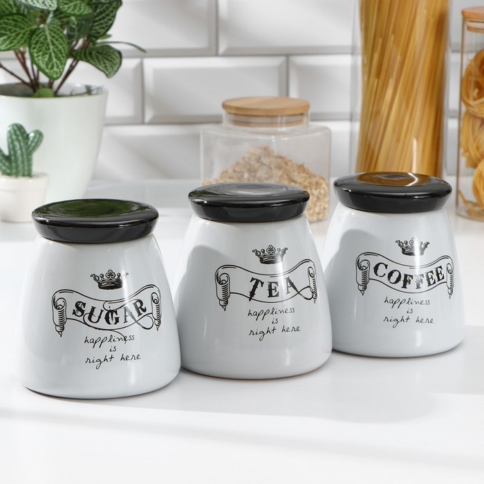 Набор банок керамических для сыпучих продуктов «Винтаж», 750 мл, 3 предмета