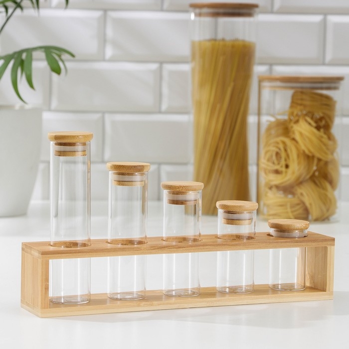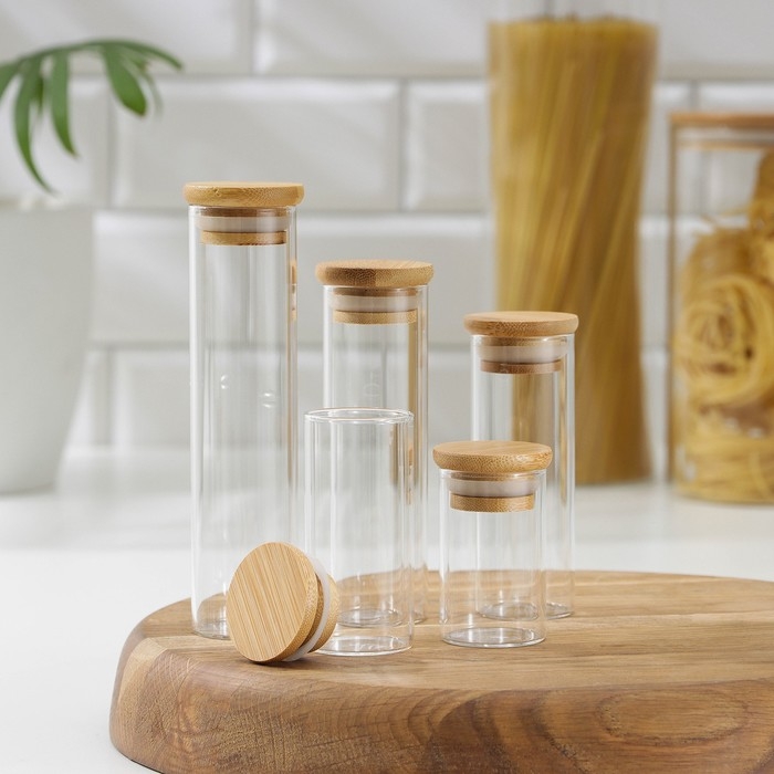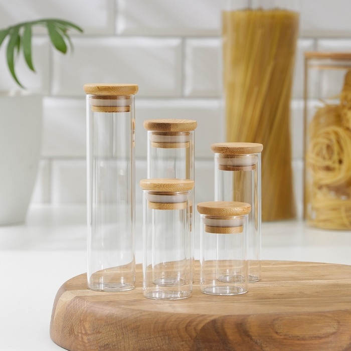 Набор банок стеклянных для сыпучих продуктов «Эко», 3,7×6,5 см, 8,5 см, 10 см, 12,5 см, 15,5 см, 5 шт