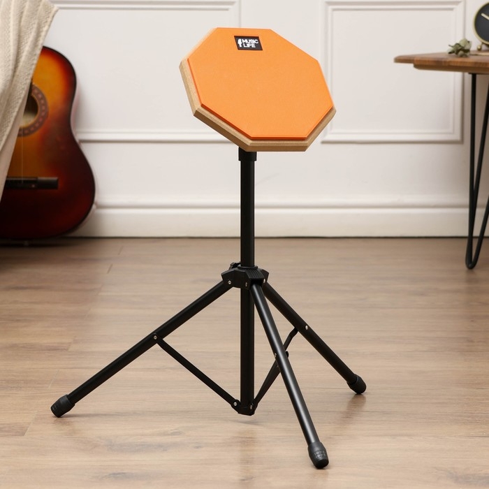 Набор барабанщика Music Life: пэд 8 дюймов, стойка, барабанные палочки, оранжевый