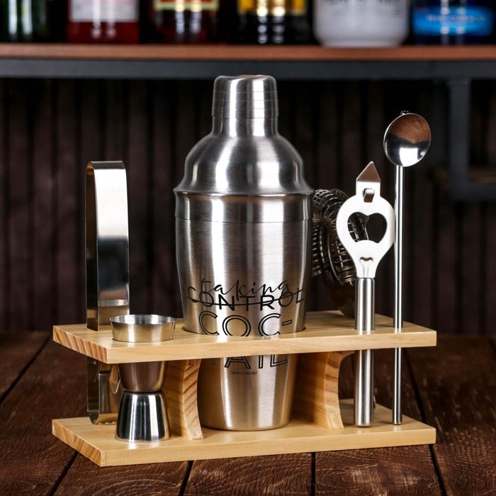 Барный набор включает в себя обязательный инвентарь для приготовления коктейлей: