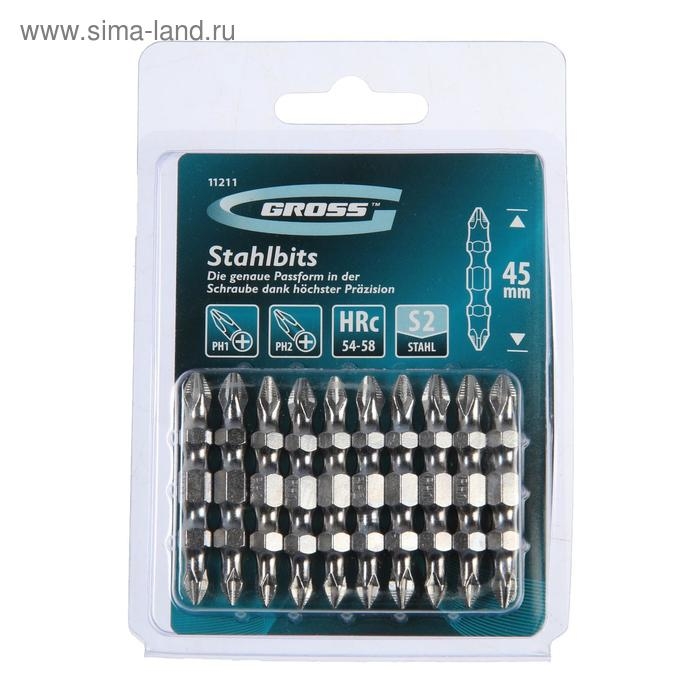Набор бит двухстор. GROSS 11211, PH2-PH1 х 45 мм, сталь S2, 10 шт.