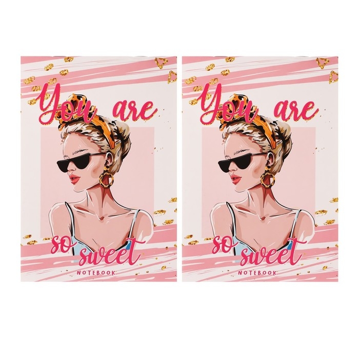 Набор блокнотов А5, 32 листа в клетку на скрепке "Модница", обложка мелованный картон, блок офсет, 2 штуки