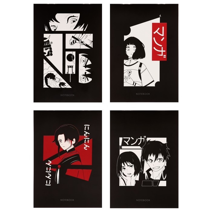 Набор блокнотов А5, 40 листов в клетку на скрепке "АнимЭ", обложка мелованный картон, блок офсет, 4 штуки