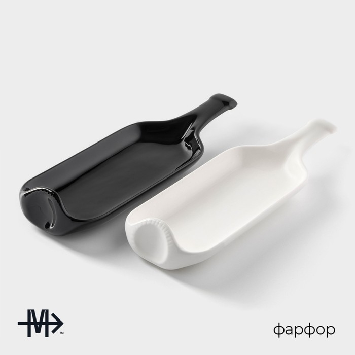 Набор блюд фарфоровых сервировочных Magistro «Бутыль Инь-Янь», 31,8×10,8×2,8 см, цвет белый, чёрный