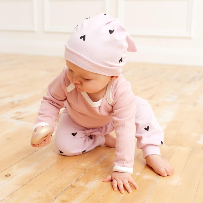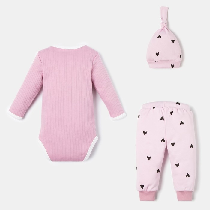 Набор: боди, штанишки и шапочка Крошка Я "Сердечки", рост 86-92 см