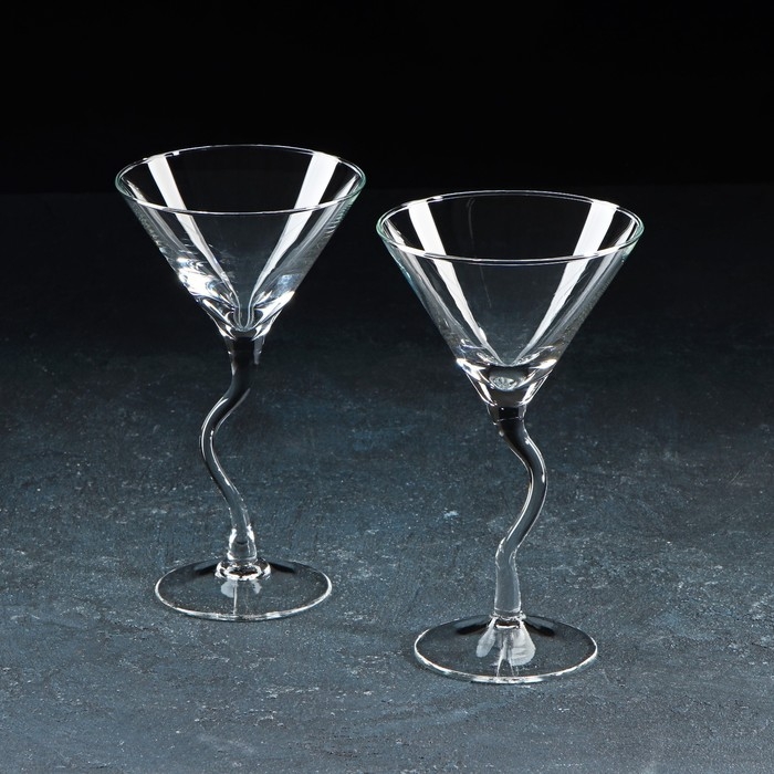 Бокалы для мартини изготовлены из качественного прочного стекла, чаша бокала имеет треугольную форму. Изюминка посуды - изогнутая ножка, что делает бокал уникальным.