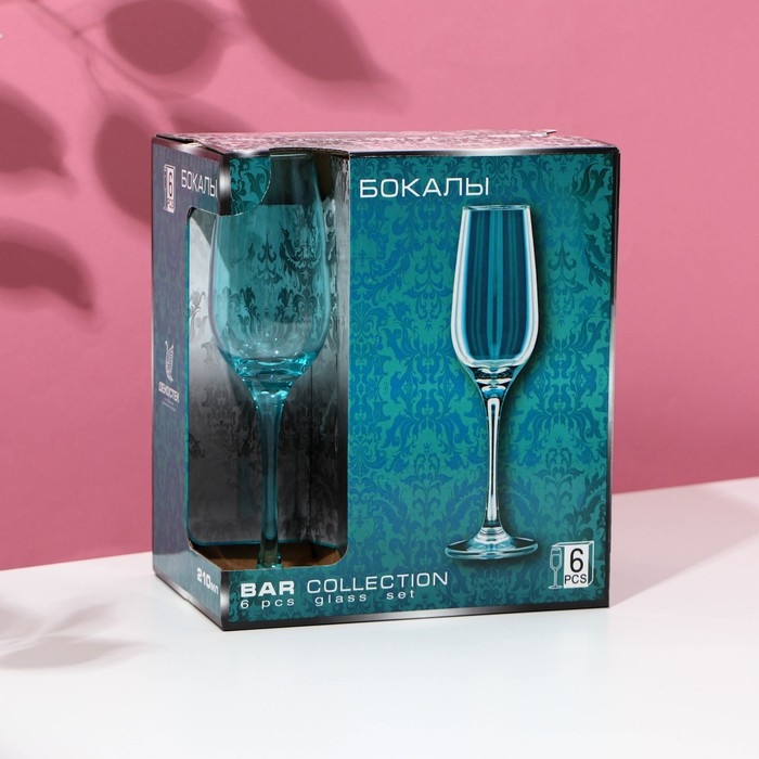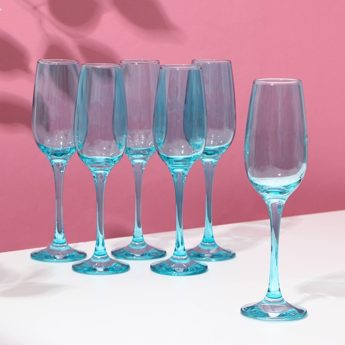 Набор бокалов для шампанского «Бирюза», стеклянный, 210 мл, 6 шт
