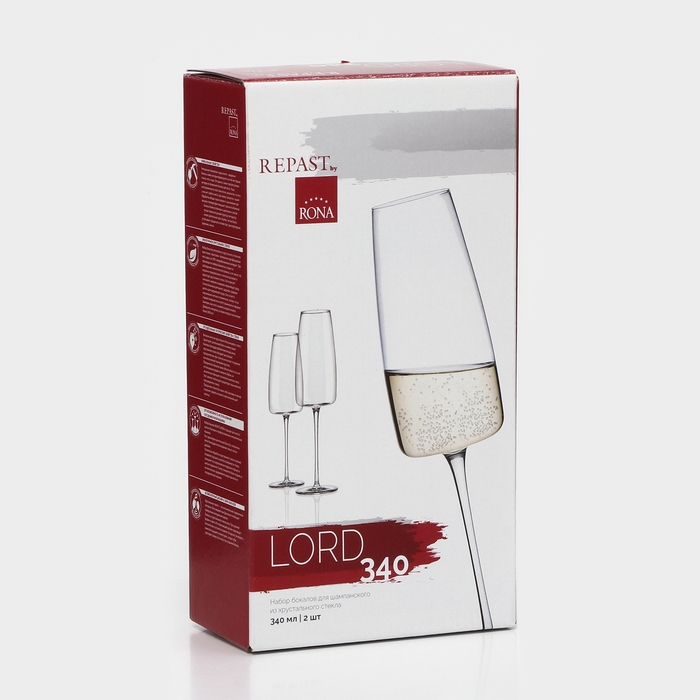 Набор бокалов для шампанского LORD, 340 мл, хрустальное стекло, 2 шт