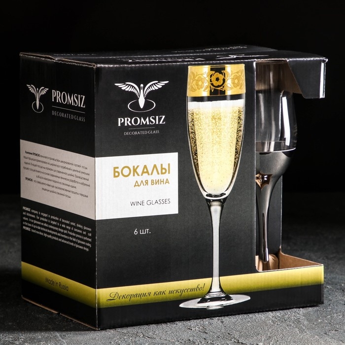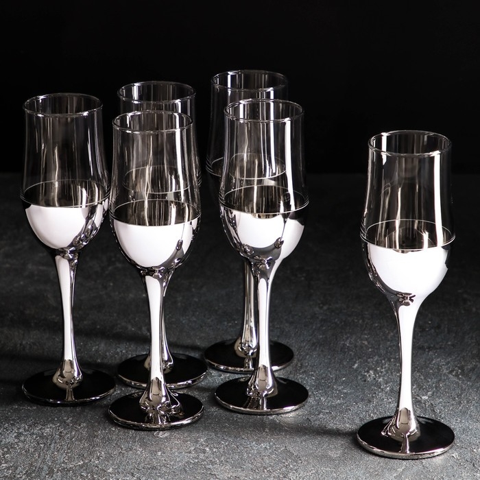 Набор бокалов для шампанского «Поло», 200 мл, 6 шт, цвет серебряный