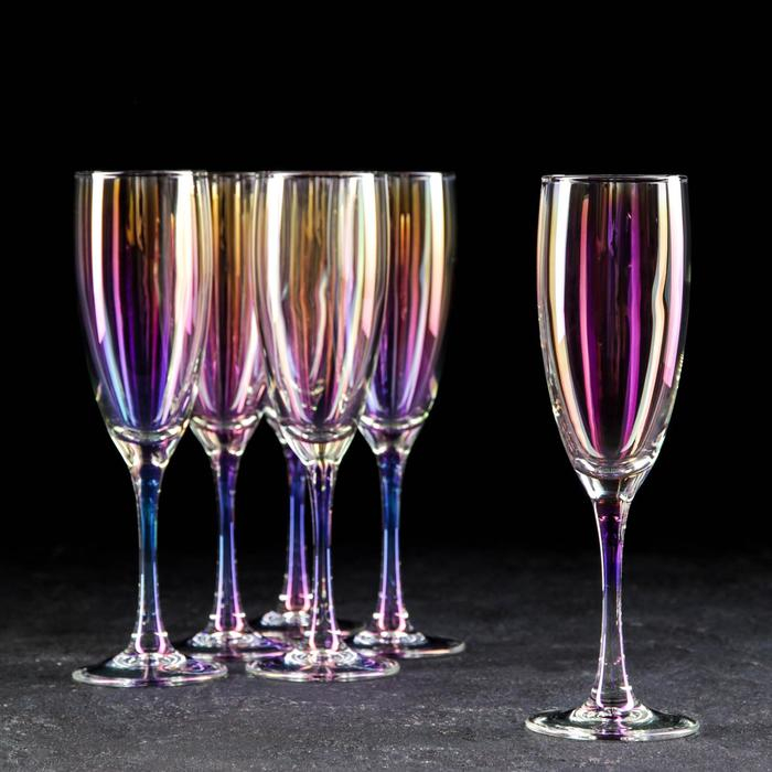 Набор бокалов для шампанского «Радуга», 170 мл, 6 шт, цвет перламутровый