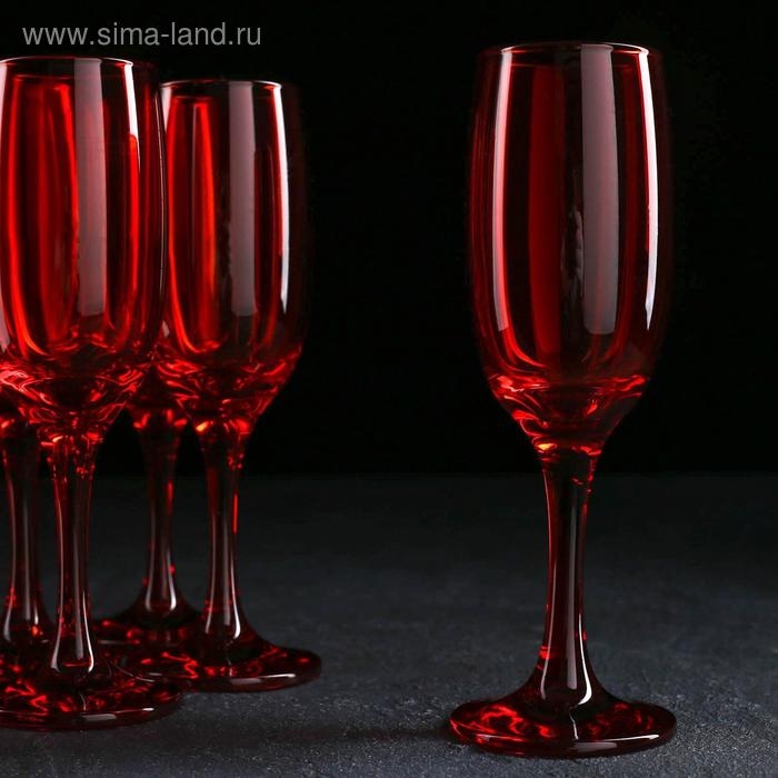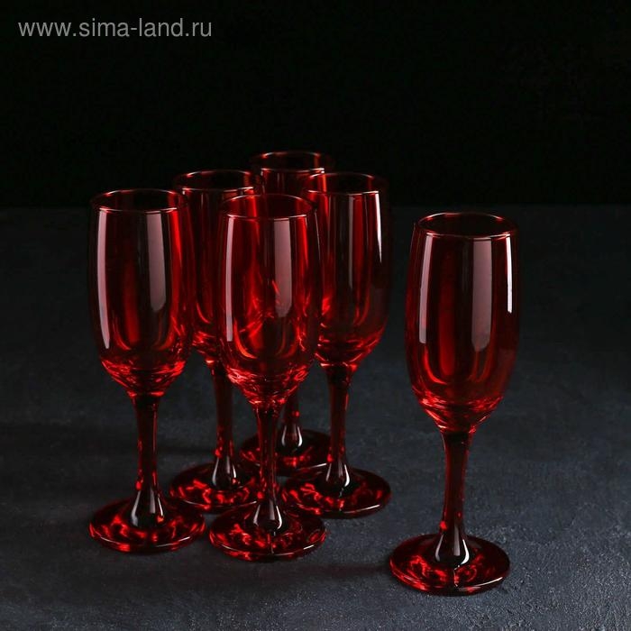 Набор бокалов для шампанского «Радуга», 190 мл, 6 шт, цвет рубин