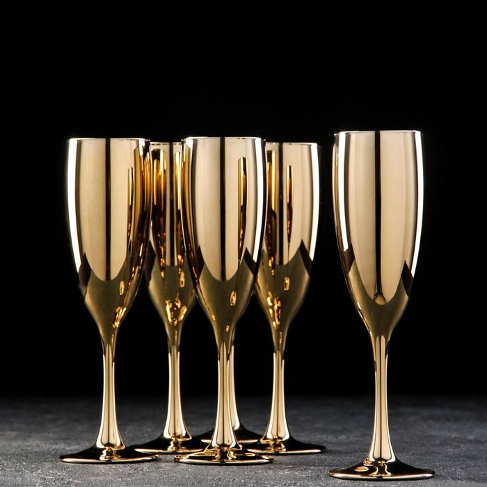 Набор бокалов для шампанского «Золото», 170 мл, 6 шт, цвет золотой