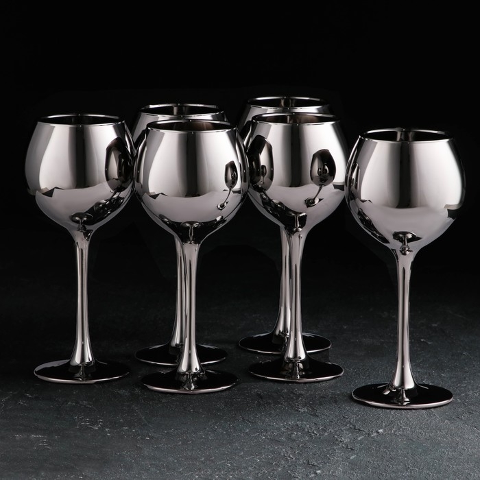 Набор бокалов для вина «Серебро», 280 мл, 6 шт, цвет серебряный