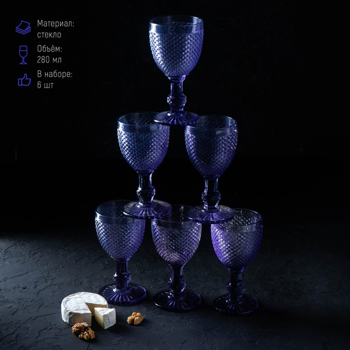 Набор бокалов для вина стеклянный Magistro «Вилеро», 280 мл, 8×16 см, 6 шт, цвет фиолетовый