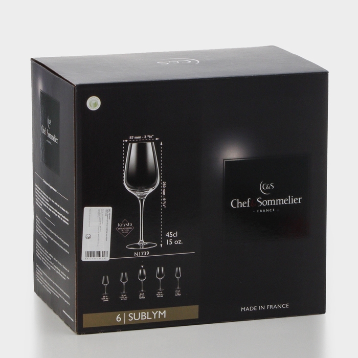 Набор бокалов для вина SUBLYM, 450 мл, хрустальное стекло, 6 шт