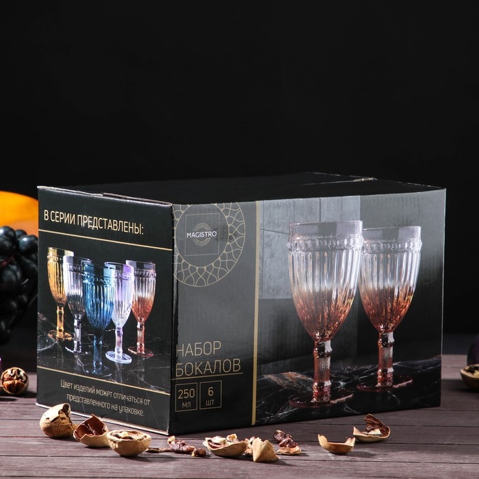 Набор бокалов из стекла Magistro «Босфор», 250 мл, 6 шт, цвет градиент серебро