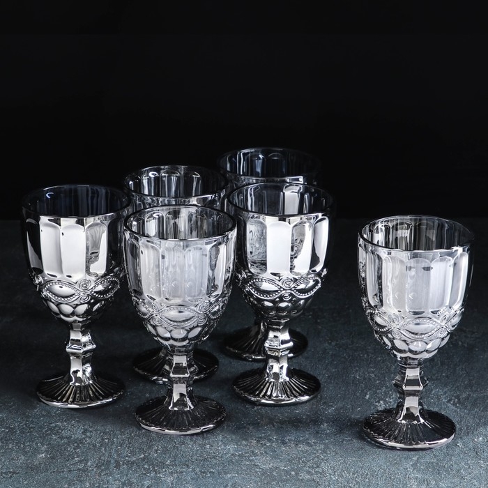 Набор бокалов стеклянных «Лоза», 350 мл, 6 шт, цвет серый