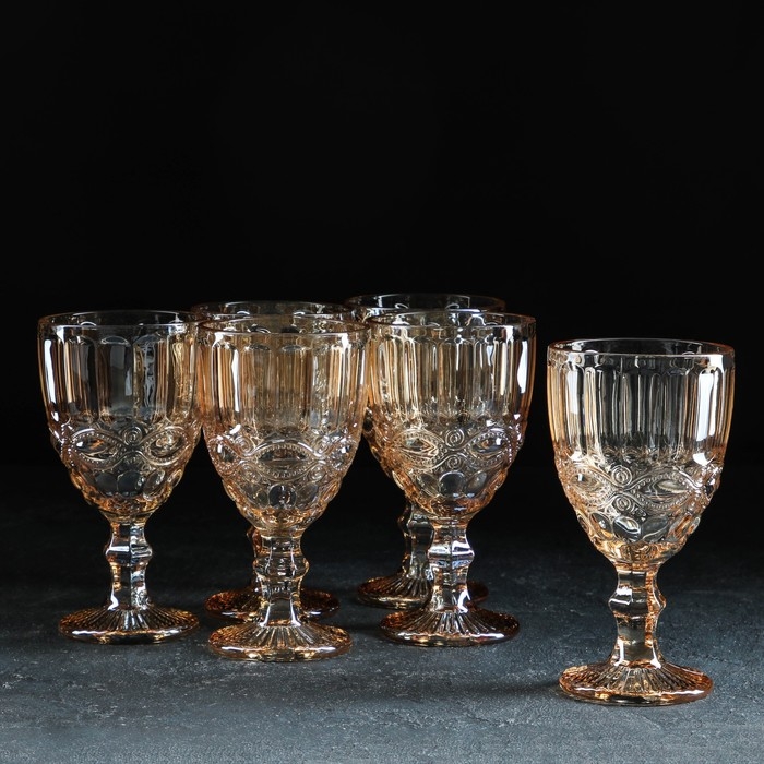 Набор бокалов стеклянных «Лоза», 350 мл, 6 шт, цвет золотой