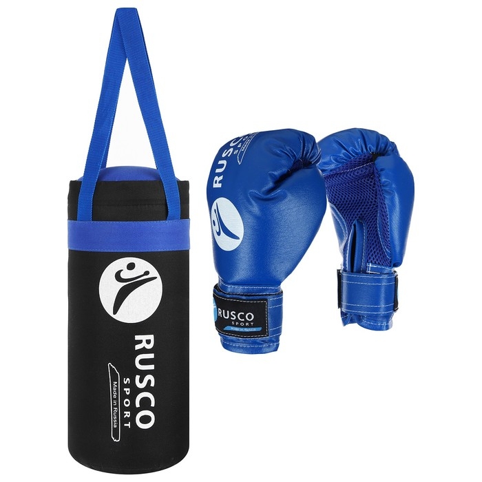 Набор боксёрский для начинающих RuscoSport: мешок, перчатки, 4 унции, цвет чёрный/синий