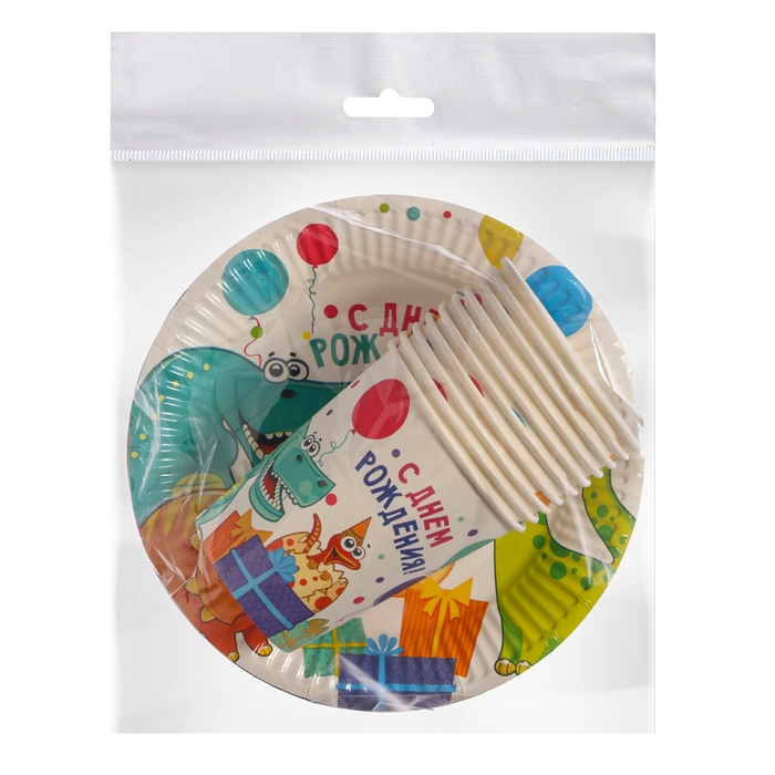 Набор бумажной посуды "Динозаврики", 10 стаканов, 10 тарелок