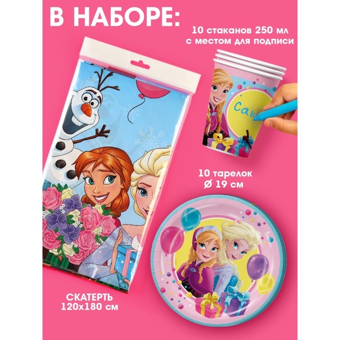 Набор бумажной посуды Холодное сердце, 10 персон (стакан, тарелка, скатерть)