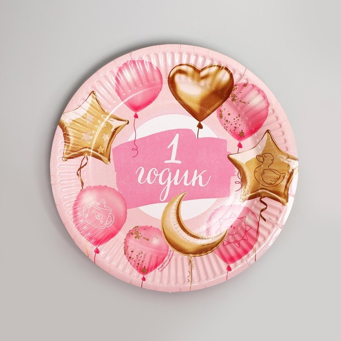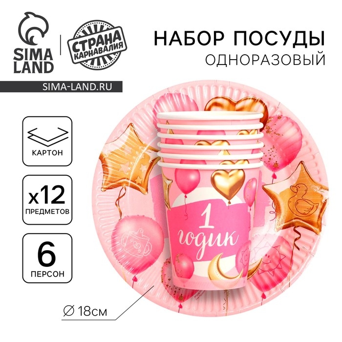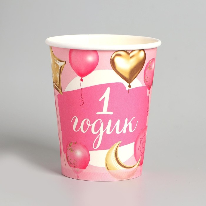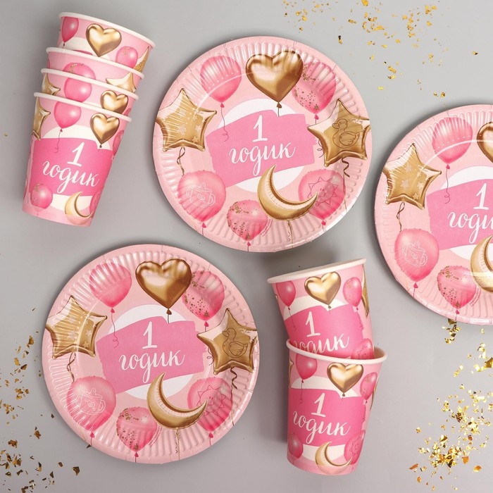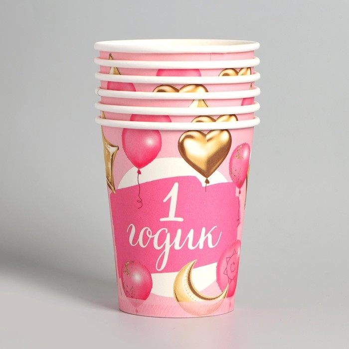Набор бумажной посуды одноразовый 1 годик», девочка, 6 стаканов, 6 тарелок