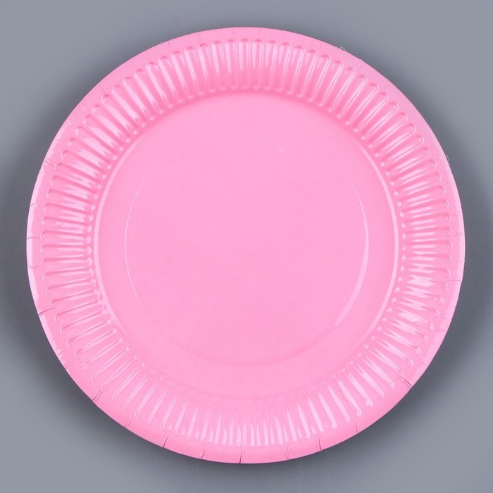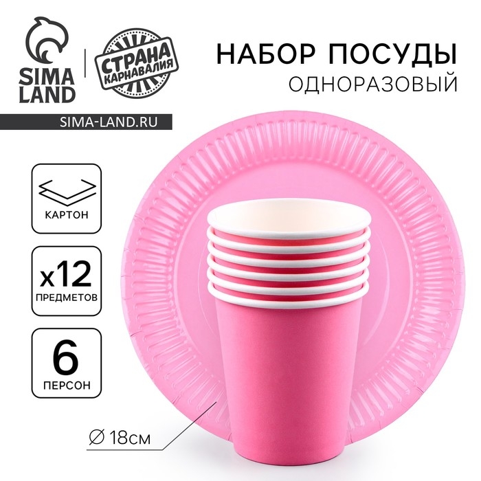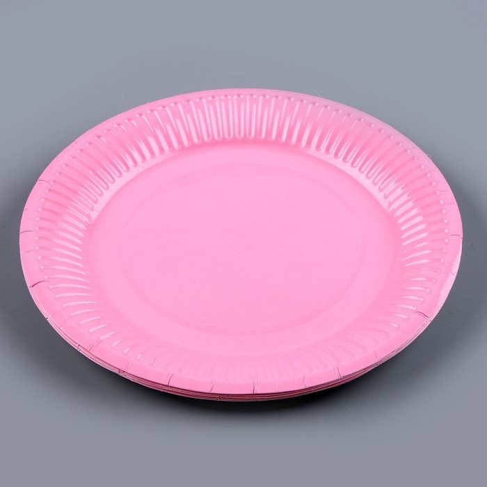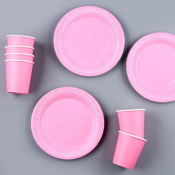 Набор бумажной посуды одноразовый: 6 тарелок, 6 стаканов, цвет розовый
