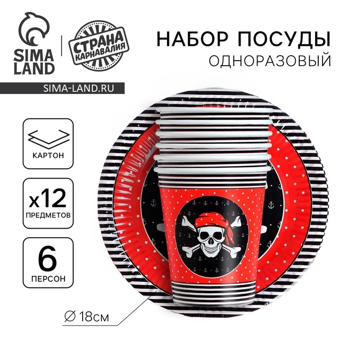 Набор бумажной посуды одноразовый Пиратская», 6 стаканов, 6 тарелок