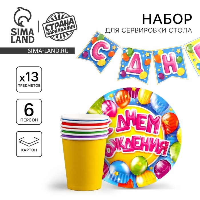 Набор бумажной посуды одноразовый С днем рождения», 6 тарелок, 6 стаканов, 1 гирлянда
