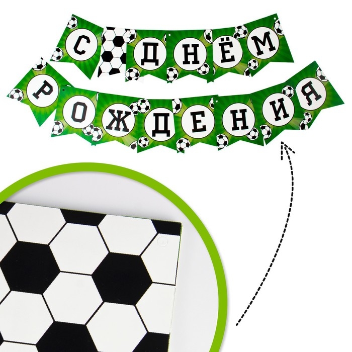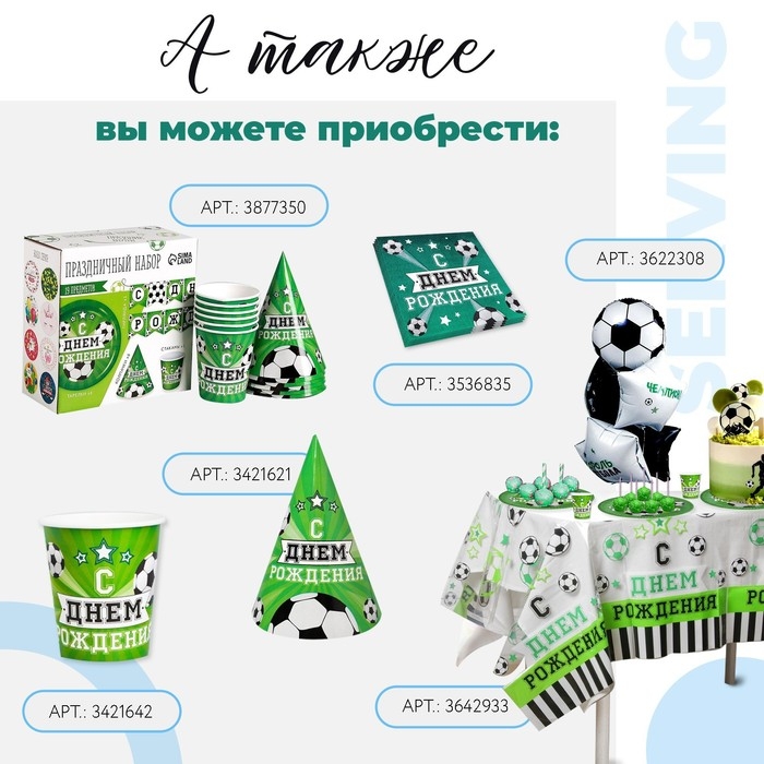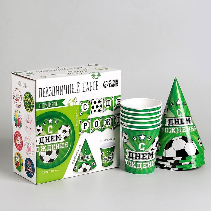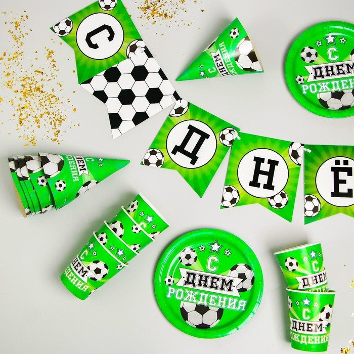 Набор бумажной посуды одноразовый С днём рождения. Футбол», 6 тарелок, 6 стаканов, 6 колпаков, 1 гирлянда