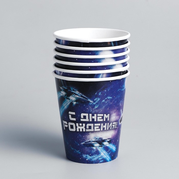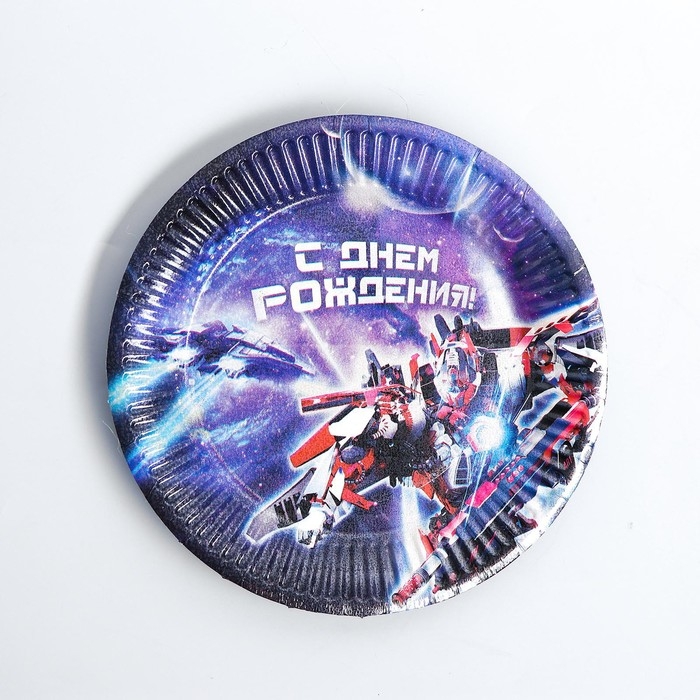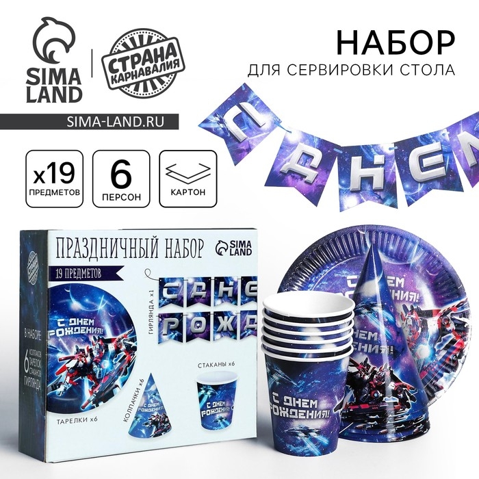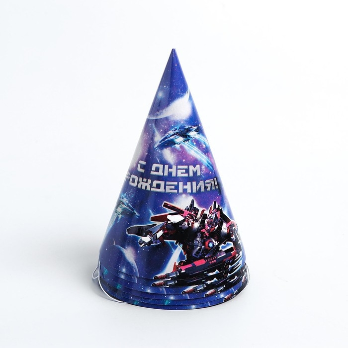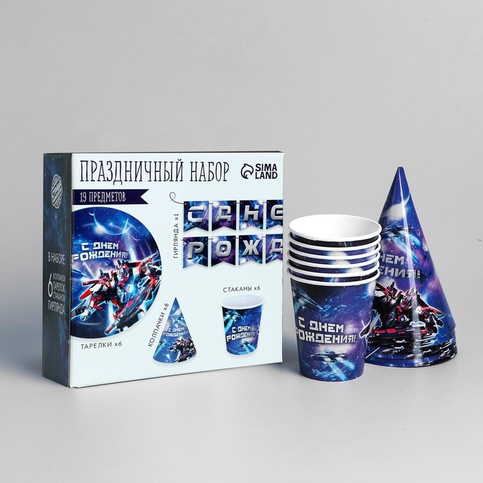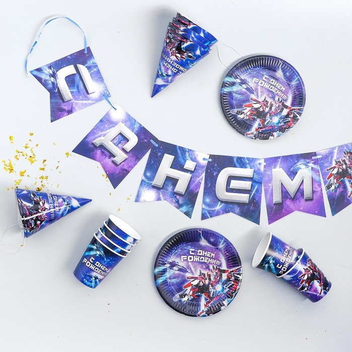 Набор бумажной посуды одноразовый С днём рождения», роботы, 6 тарелок, 6 стаканов, 6 колпаков, 1 гирлянда
