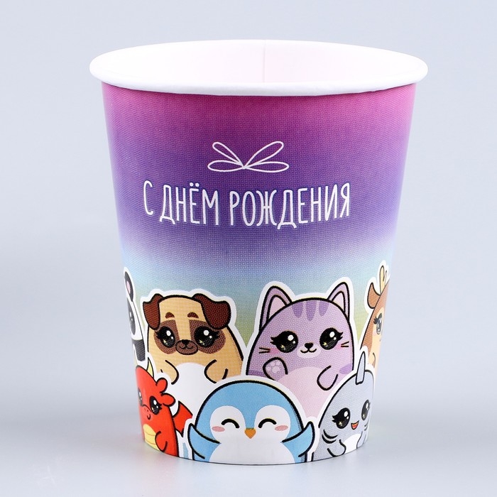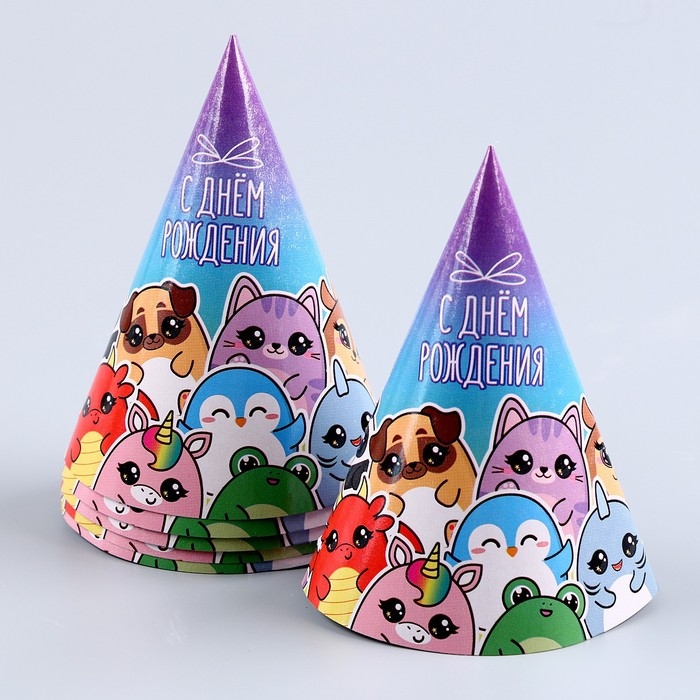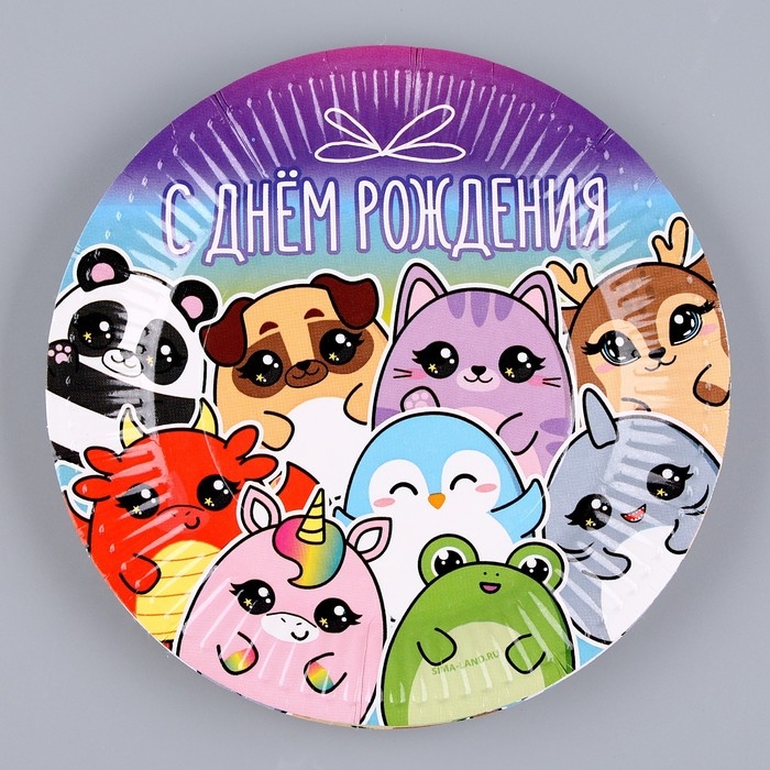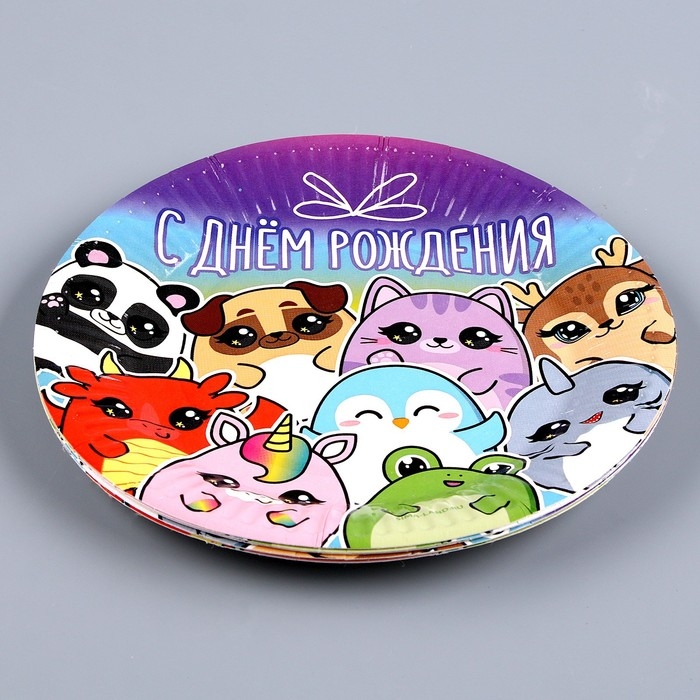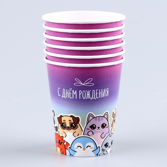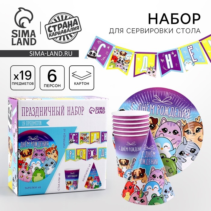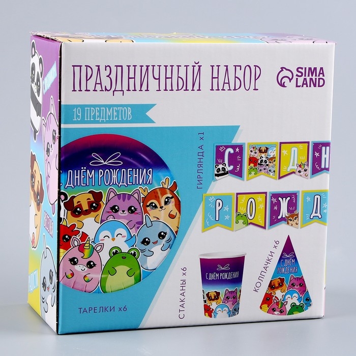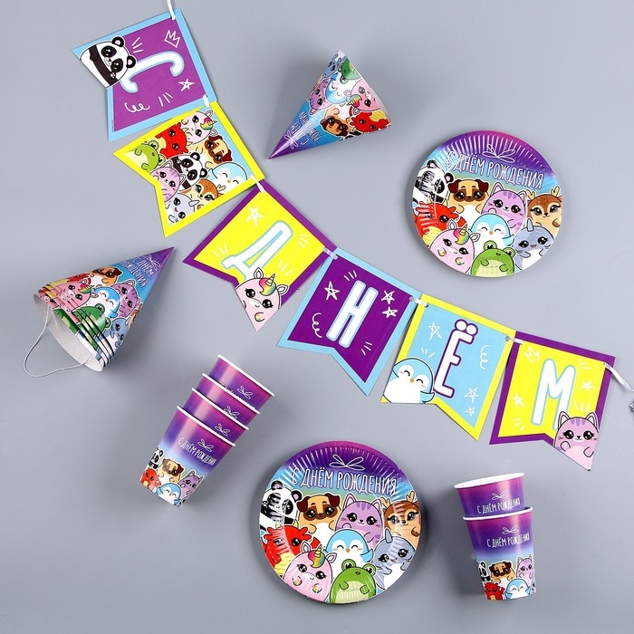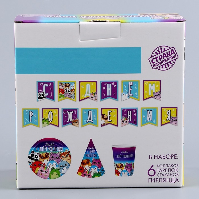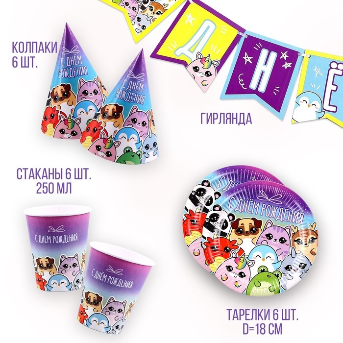 Набор бумажной посуды одноразовый С днём рождения», стикеры: 6 тарелок, 1 гирлянда, 6 стаканов, 6 колпаков