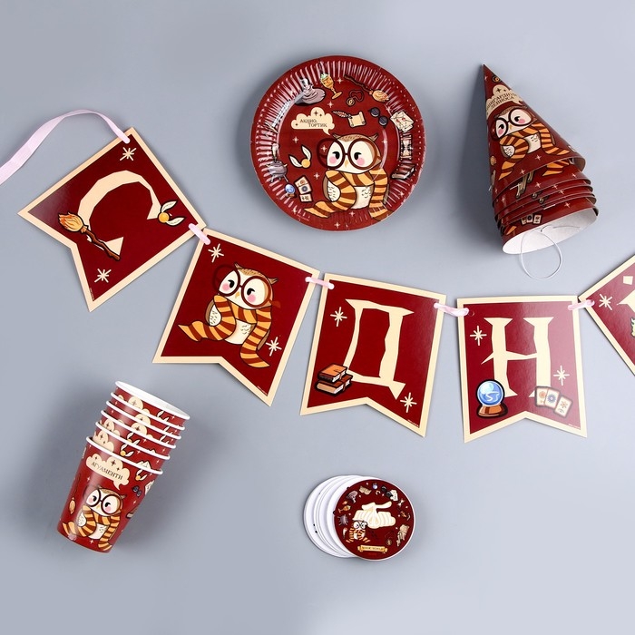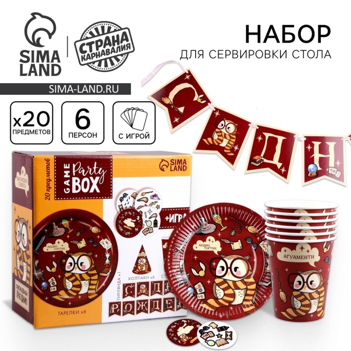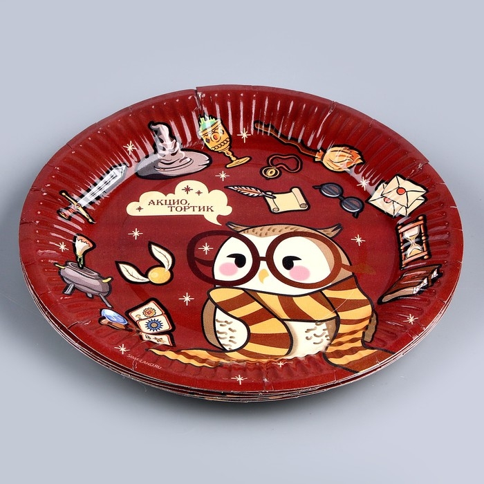 Набор бумажной посуды одноразовый Совушка»: 6 тарелок, 6 стаканов, 6 колпаков