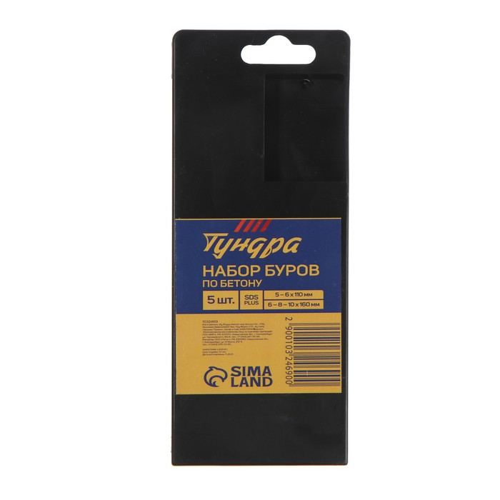 Набор буров по бетону ТУНДРА, SDS-plus, 5-6 х 110 мм, 6-8-10 х 160 мм, 5 шт.