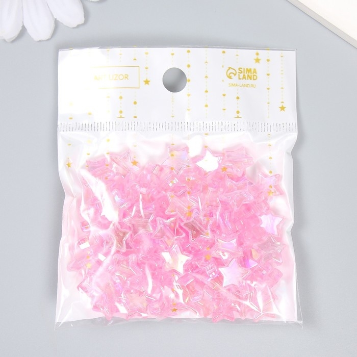 Набор бусин для творчества пластик "Звезда. Ярко-розовый перламутр" н-р 20 гр 1,1х1,1х0,4 см