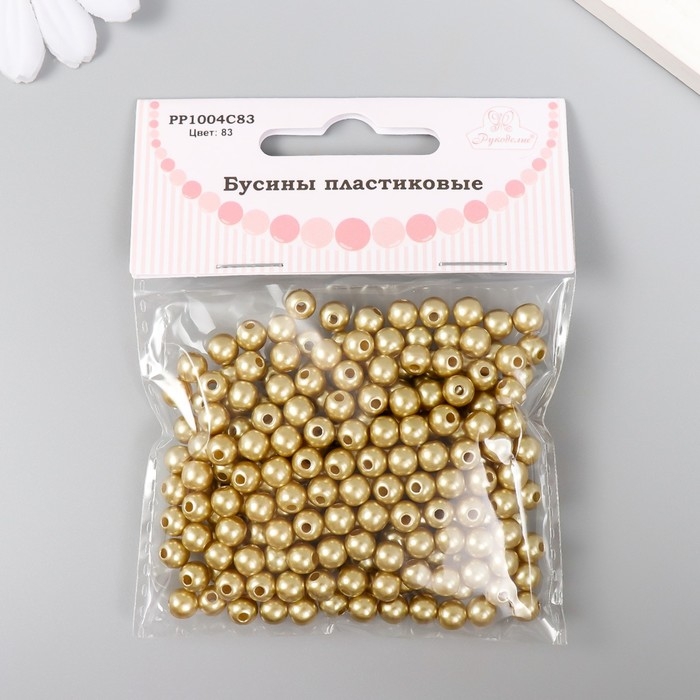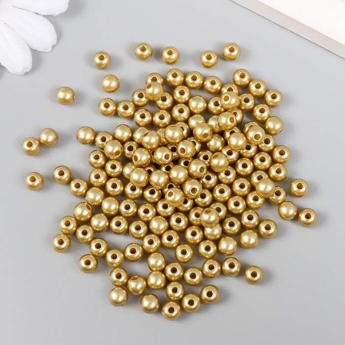 Набор бусин "Рукоделие" пластик, диаметр 6 мм, 25 гр, золотой